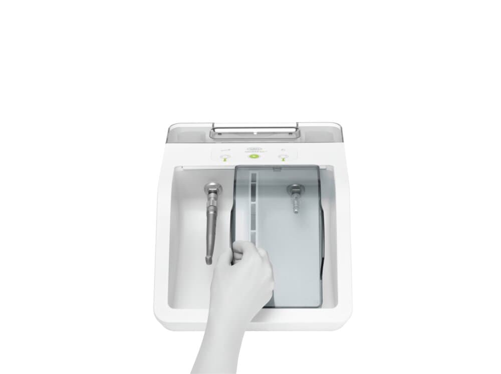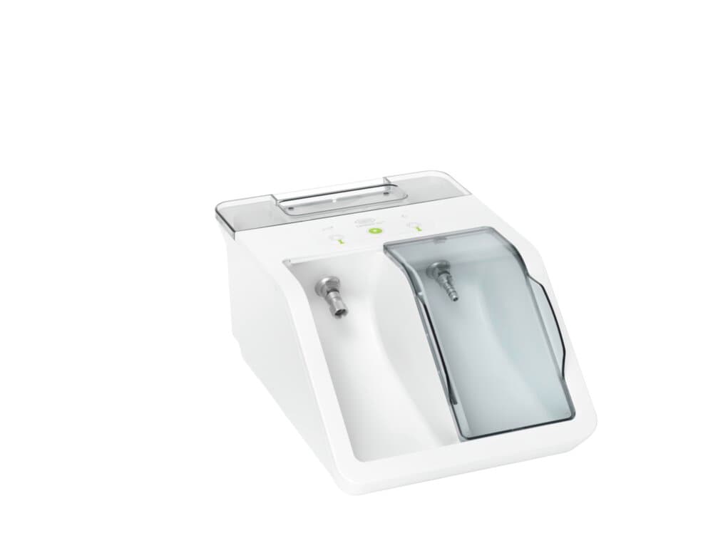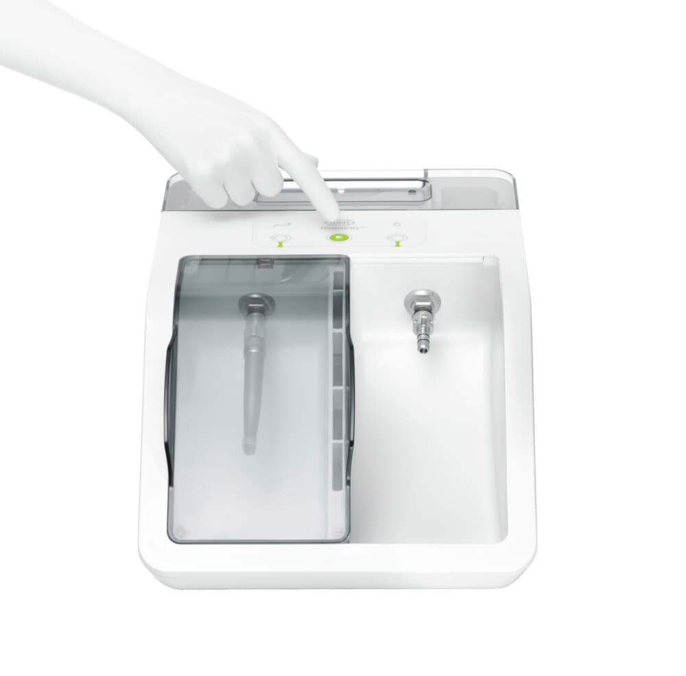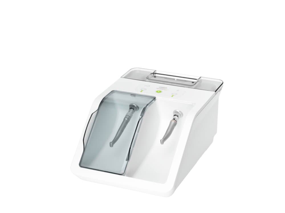 Assistina garantisce una pulizia corretta dei canali spray e l'asciugatura degli ingranaggi interni con aria compressa. La pulizia dei canali spray serve a prevenire eventuali ostruzioni causate dai depositi di calcare e in questo modo garantisce un funzionamento regolare, una durata di vita superiore e costi di manutenzione più bassi.