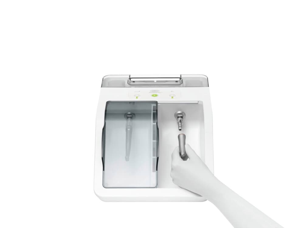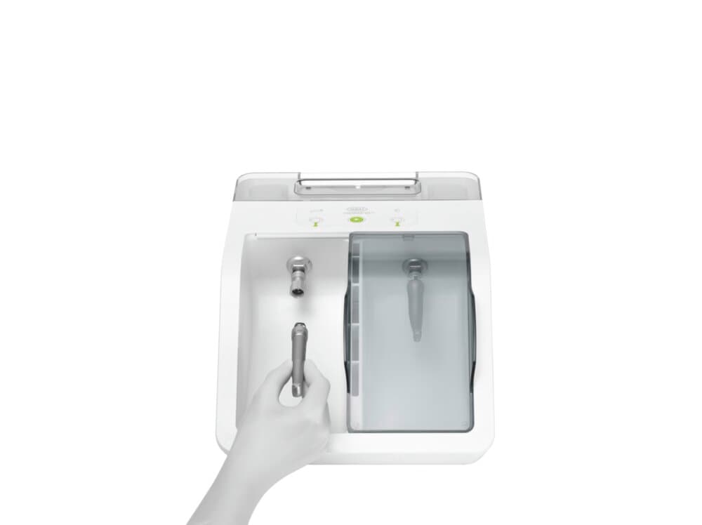 Grazie alla rivoluzionaria procedura di nebulizzazionecon olio, la lubrificazione degli strumenti di trasmissione è più rapida e accurata che mai. Le parti meccaniche sono lubrificate senza neanche rimuoverle.