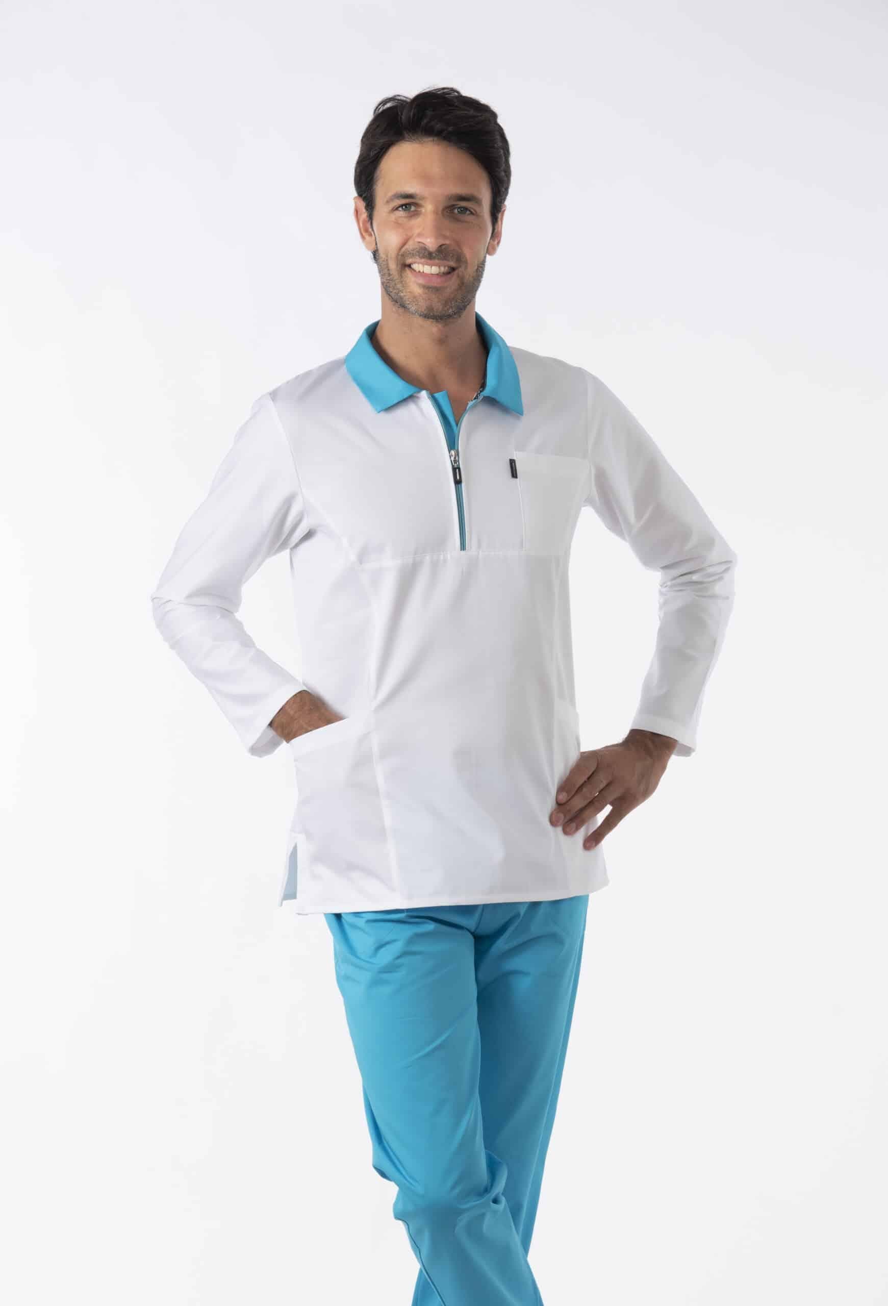 Casacca Unisex in cotone gabardine 100%. Tasca larga sui fianchi e taschino sul petto. Colletto a polo con mezza zip. Semplice ed elegante con spacchetti laterali per una maggiore libertà di movimento. Polsini magliati o elastici. La casacca Galsgow è sinonimo di comfort e resistenza. Divisa odontoiatrica usata ampiamente dai dentisti.