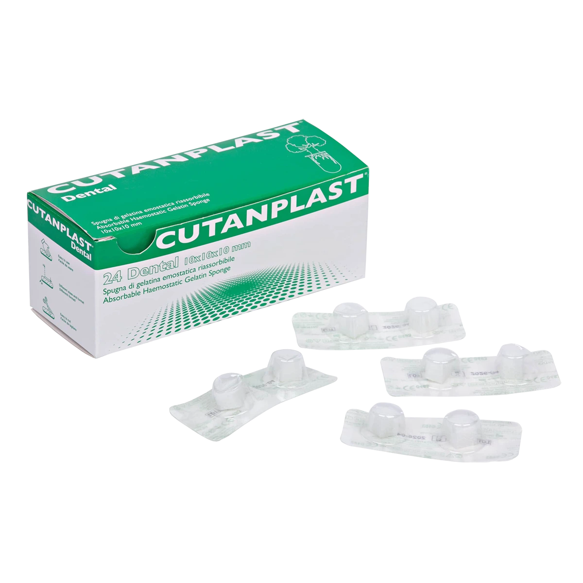 Spugna di gelatina emostatica riassorbibile 10x10x10. Confezione 24 pezzi.
