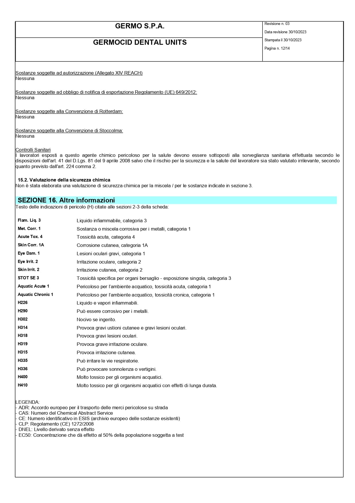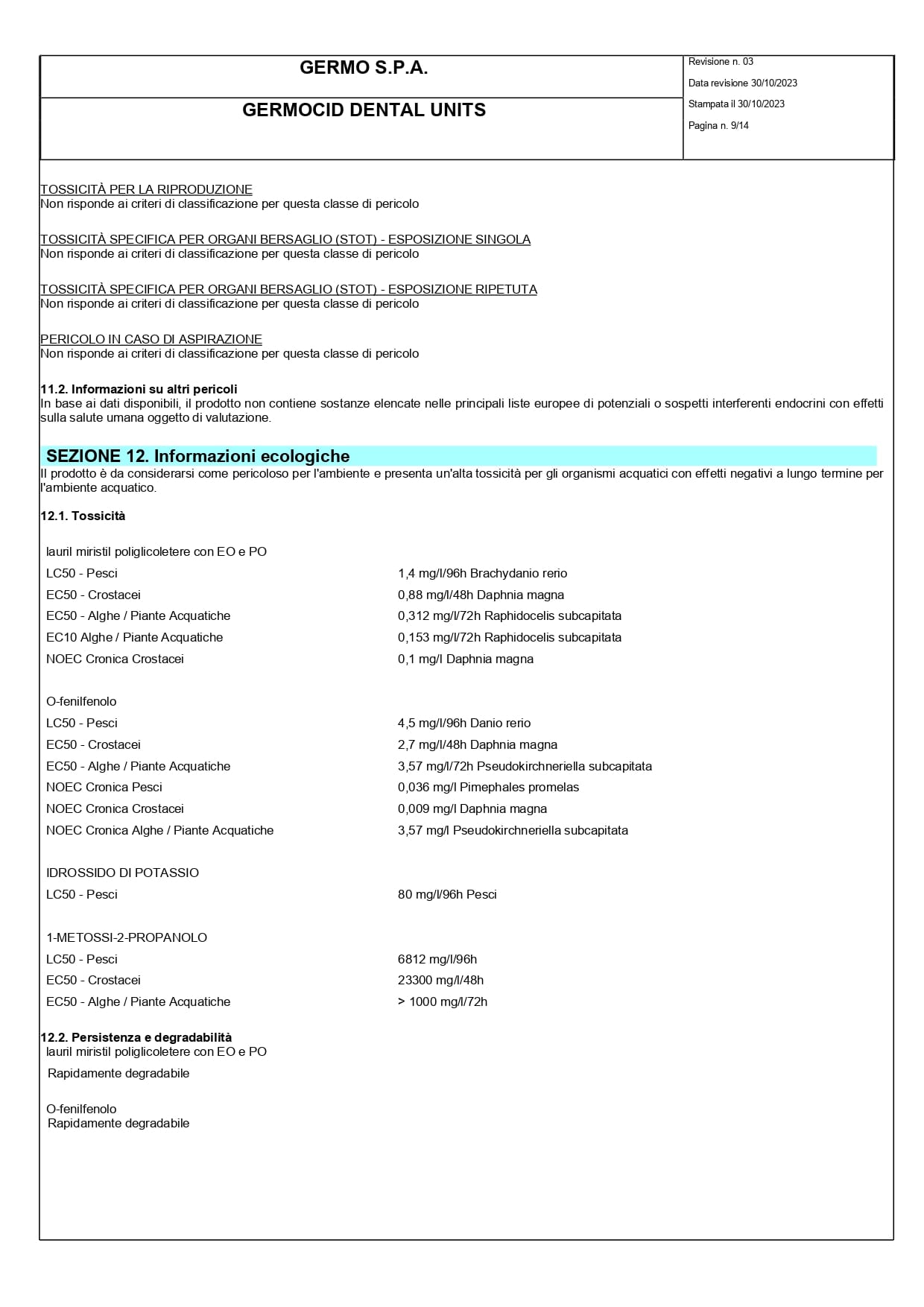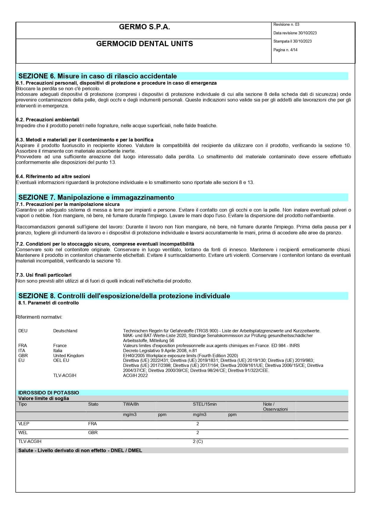 Disinfettante detergente per circuiti idrici del riunito Germocid Dental Units è una soluzione altamente efficace, con un pH superiore a 10, che svolge sia funzione detergente che disinfettante, anche in presenza di materiale organico. L’uso regolare di questo prodotto aiuta a prevenire ed eliminare il rischio di proliferazione di patogeni infettivi, assicurando un livello elevato di igiene e sicurezza. Attivo su: batteri Gram positivi e Gram negativi (compresa Legionella), funghi (muffe e lieviti).