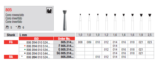 Fresa cono rovesciato diamantata 805