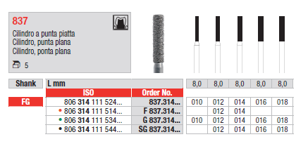 Fresa cilindro a punta piatta diamantata 837