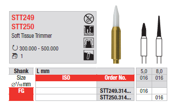 Per il trattamento paradontale, in alternativa al bisturi e all’elettrochirurgia. Il Tissue Trimmer STT è uno strumento rotante, realizzato in ceramica, che può essere usato al posto del bisturi o dell’elettrochirurgia. La parte attiva in ceramica biocompatibile separa i tessuti senza produrre calore.