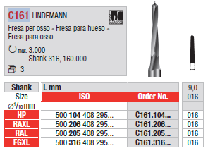 Fresa per osso carburo di tungsteno C161 LINDEMANN