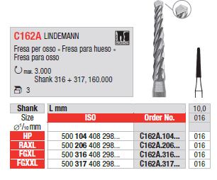 Fresa per osso carburo di tungsteno C162A LINDEMANN