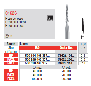 Fresa per osso carburo di tungsteno C162S LINDEMANN