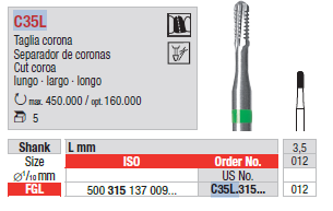 taglia corone standard. Grazie alla configurazione del tagliente particolarmente compatta il C35L si distingue per le sue caratteristiche di taglio